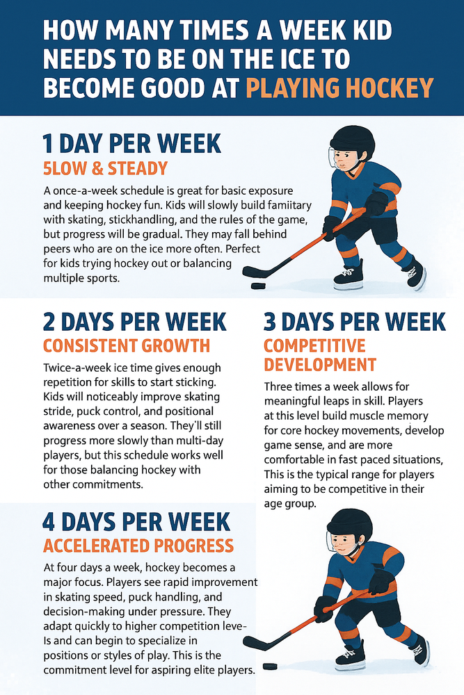 Hockey is a unique sport where repetition, consistency, and quality of practice make a huge difference in development. The number of times a player steps on the ice each week has a direct impact on their speed of improvement, confidence, and game readiness. While every child learns at their own pace, understanding how practice frequency influences skill growth can help parents make the best decision for their young player’s goals, whether they’re just trying hockey out for fun or aiming for competitive play. Below is a guide to what you can generally expect based on weekly ice time.